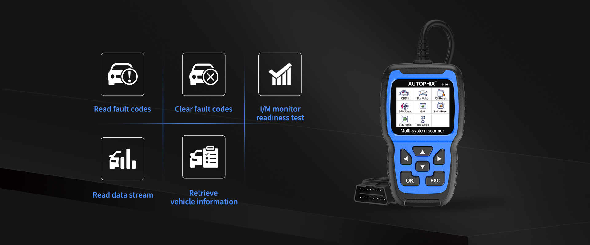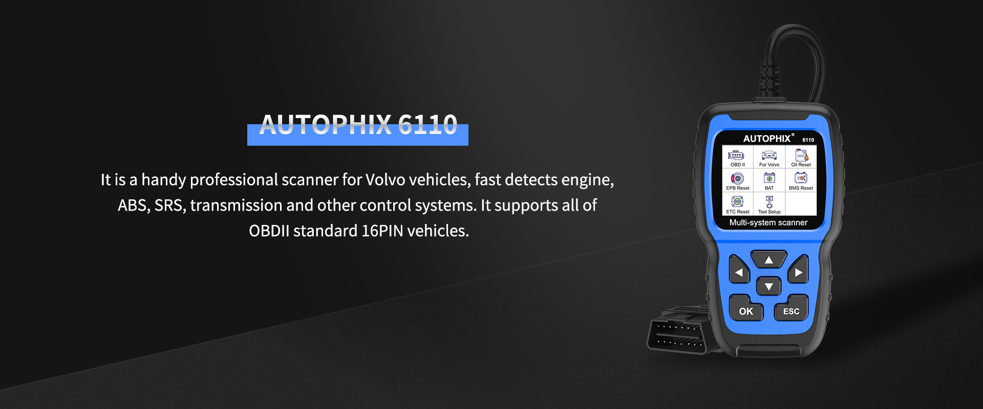 AUTOPHIX 6110 is a handy professional scanner for Volvo vehicles, fast detects engine, ABS, SRS, transmission and other control systems. It supports all of OBDII standard 16PIN vehicles.