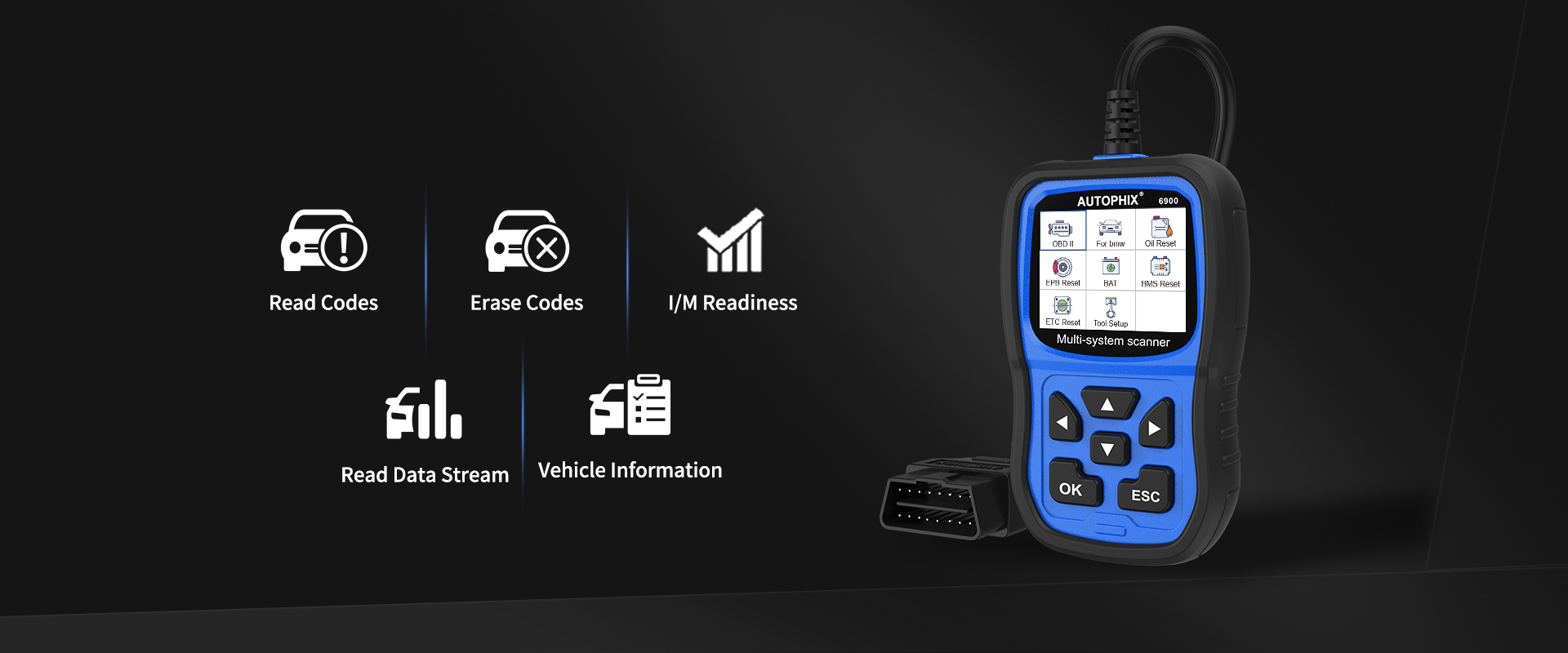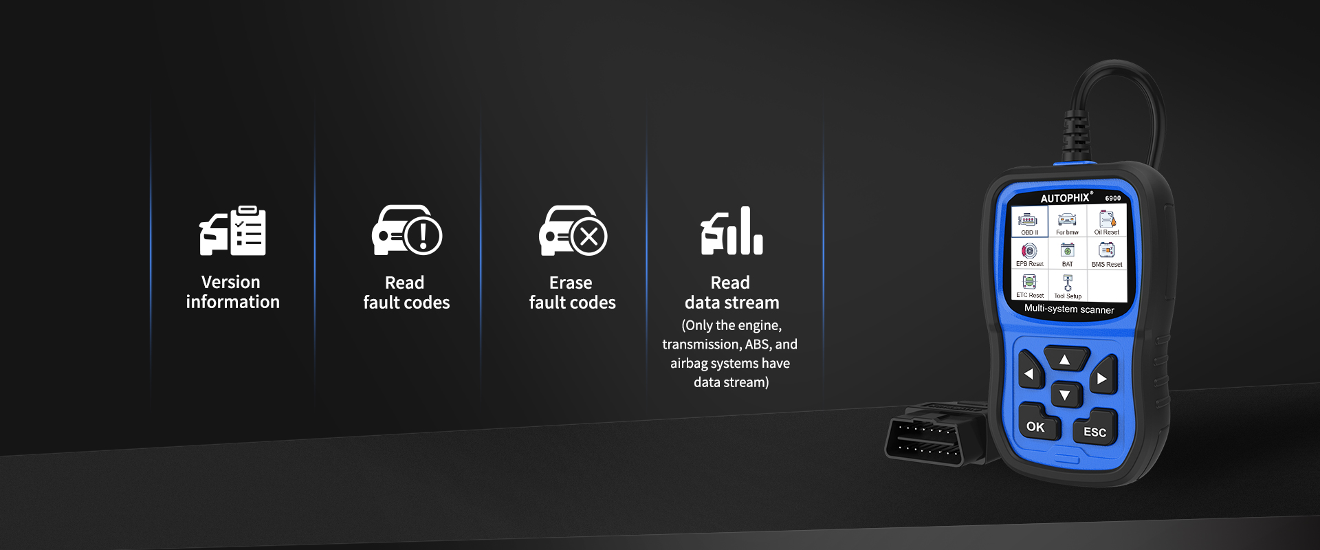 AUTOPHIX 6900 is a handy professional scanner for BMW Vehicles, fast detects engine, ABS, SRS, transmission and other control systems. It supports all of OBDII standard 16PIN vehicles.