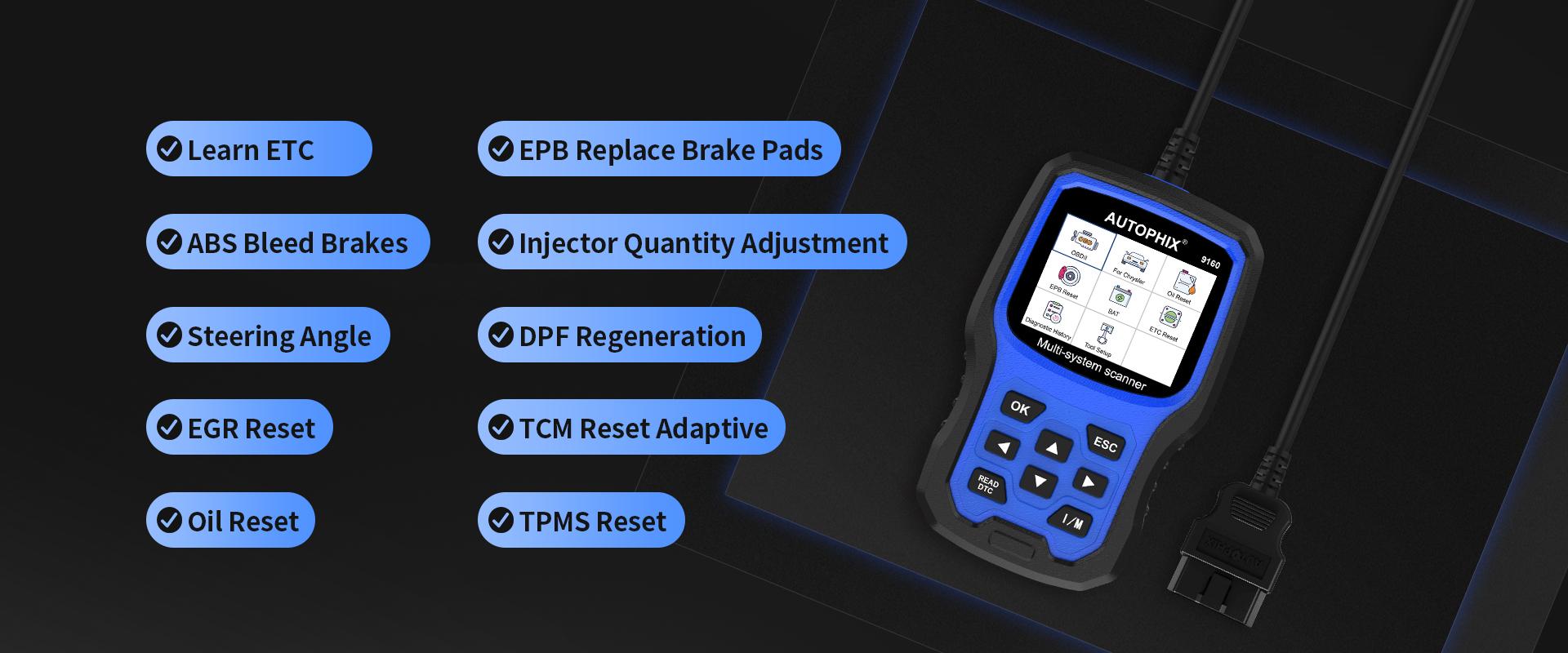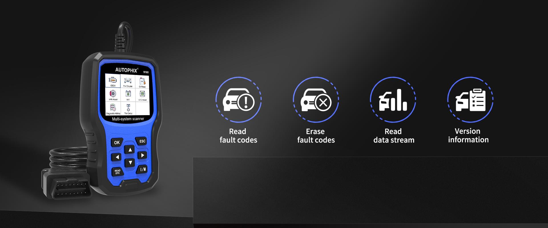 AUTOPHIX 9160 is a handy professional scanner for Chrysler vehicles, fast detects engine, ABS, SRS, transmission and other control systems. It supports all of OBDII standard 16PIN vehicles.
